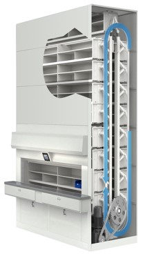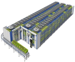 基于橫置式鏈斗升降機原理,水平方向往復移動存儲料斗,可限度利用空間的深度。反應速度快、吞吐量高的揀選倉儲系統(tǒng)。一名人員每小時可在每個工作站完成20至400個貨位作業(yè)。